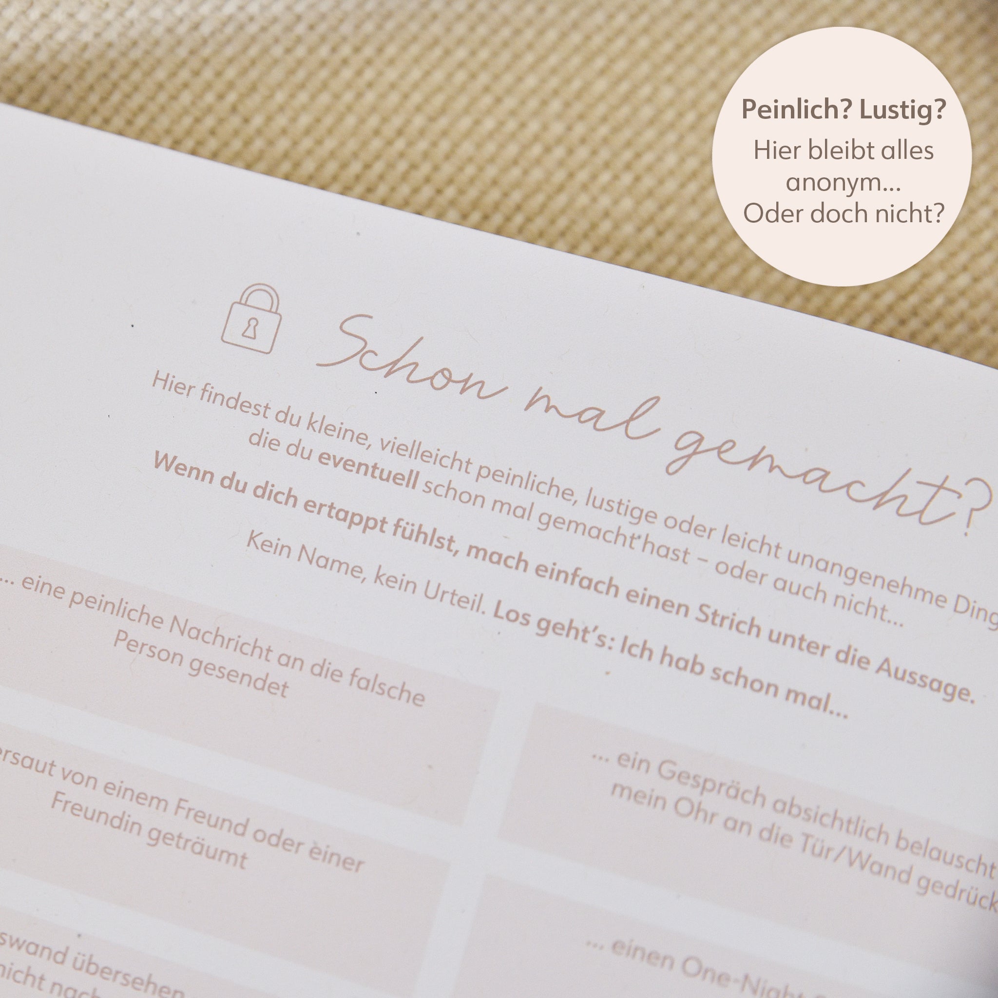 Ein Highlight für jede Mädelsrunde: herrlich ehrlich, ein bisschen frech und komplett anonym – perfekt für gemeinsame Lacher.