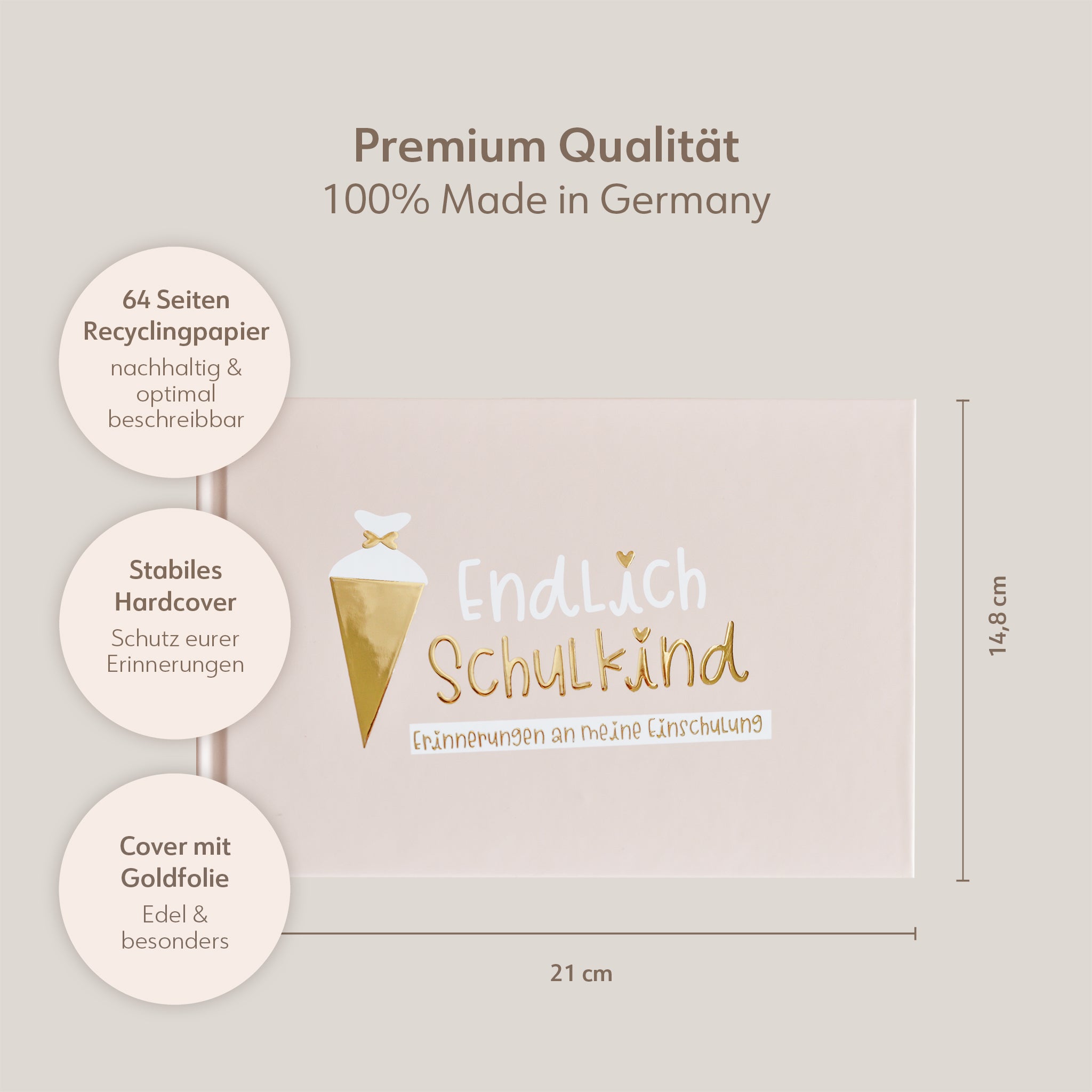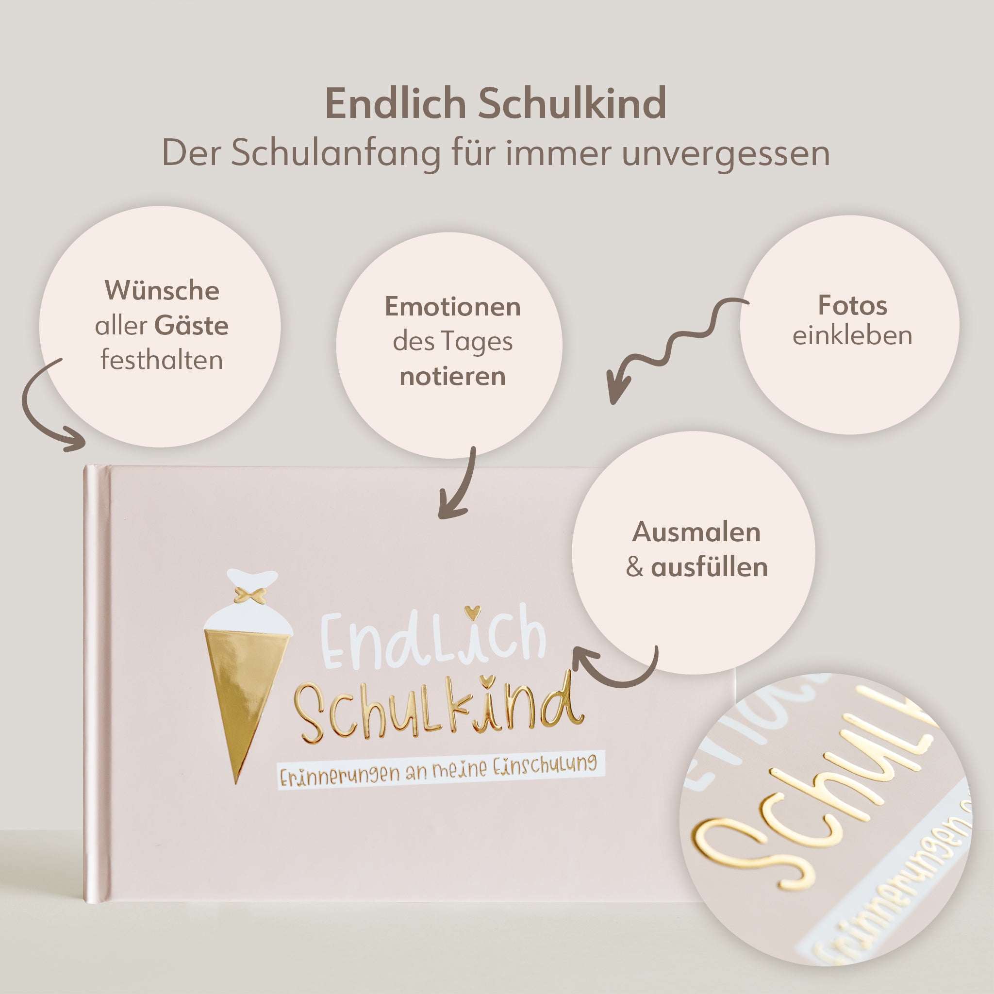 Halte alle besonderen Momente der Einschulung fest - mit Platz für Fotos, Texte und Gästewünsche. -