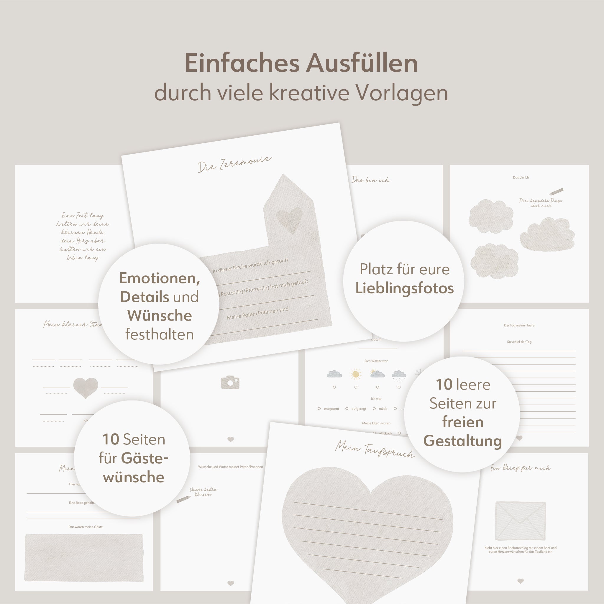 Die klar strukturierten Seiten und Vorlagen erleichtern das Festhalten von Gedanken und Erinnerungen. -